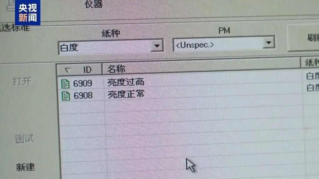 上海市质量监督检验技术研究院有限公司轻化所高级工程师 肖建芳:刚才我们对这一批复印纸进行了测试,可以看到现在复印纸的D65亮度数值都超过了100%。国家对复印纸的D65亮度要求应该小于等于95.0%,现在已经大于100%了,远超过国家标准要求。而且学生用品对于D65亮度的要求应该小于等于85.0%,如果学生一旦使用这种市面上所售卖的高亮度复印纸的话,长期使用可能会对视力产生不利影响。